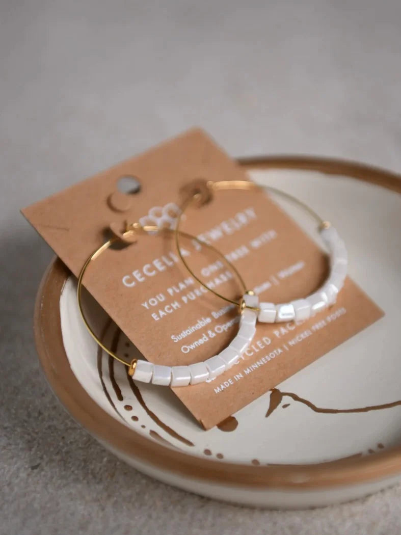 Emilie Vertical Stripe Beaded Fringe Earrings Port