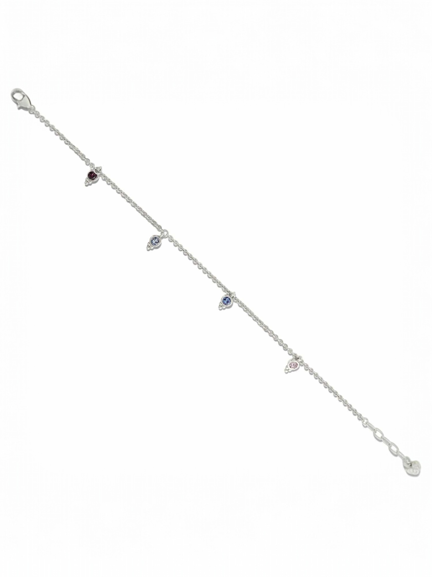 Brilliant colored hand-set crystals that appear like radiant gems encircle this anklet – adding a pretty, feminine touch to your look.