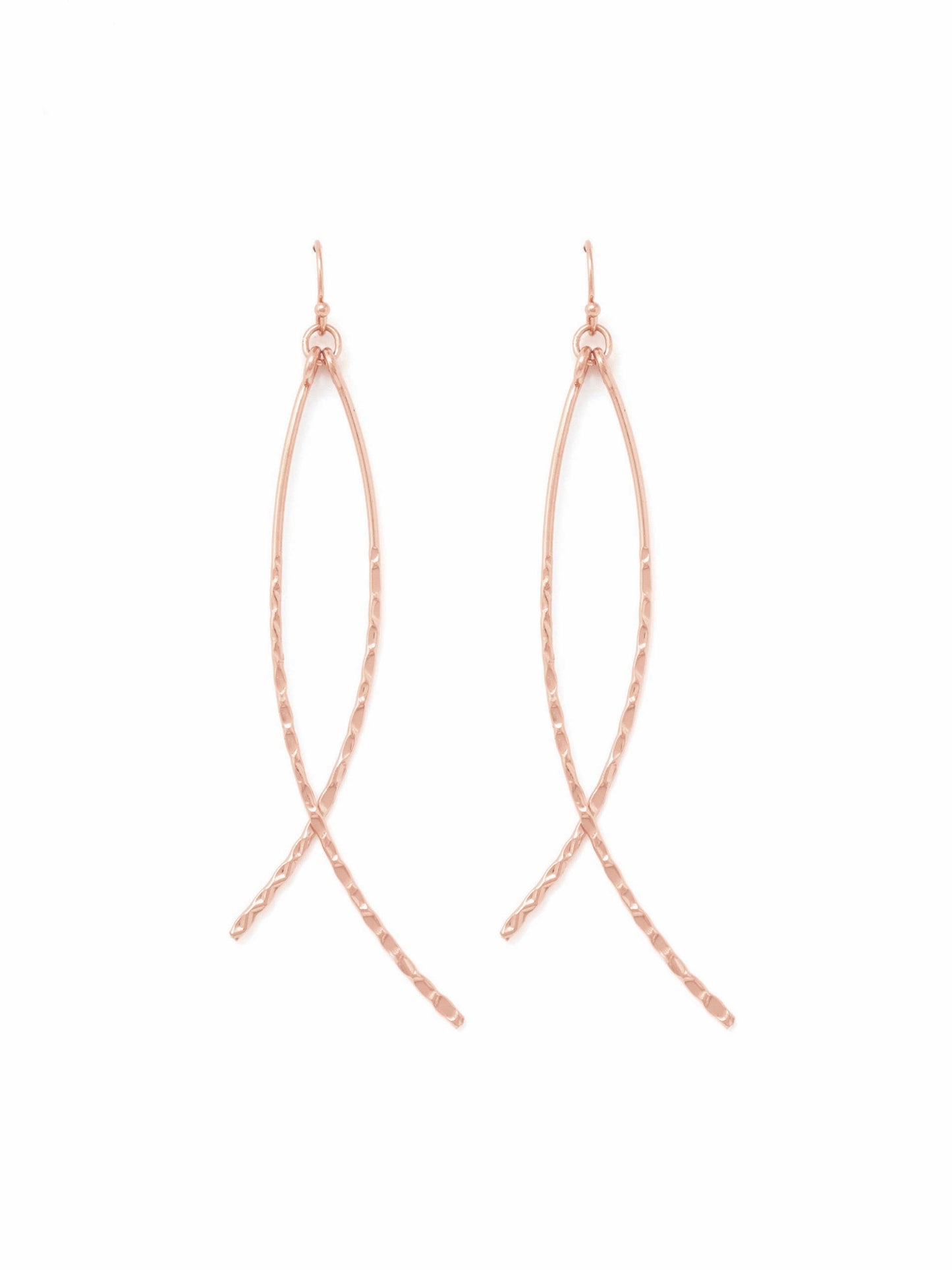Double Hammered Narrow Curve Earrings (Rose gold)