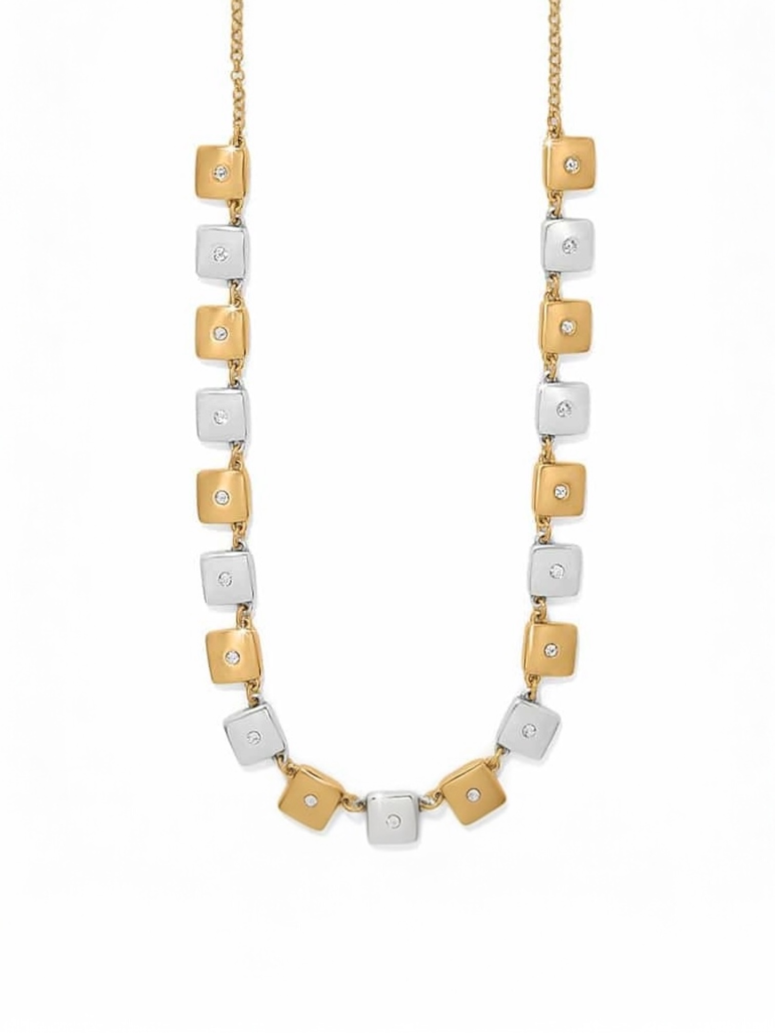 French for “level” or “step” – statement lightweight jewelry with square steps in beautiful repetition are highlighted with crystal accents.