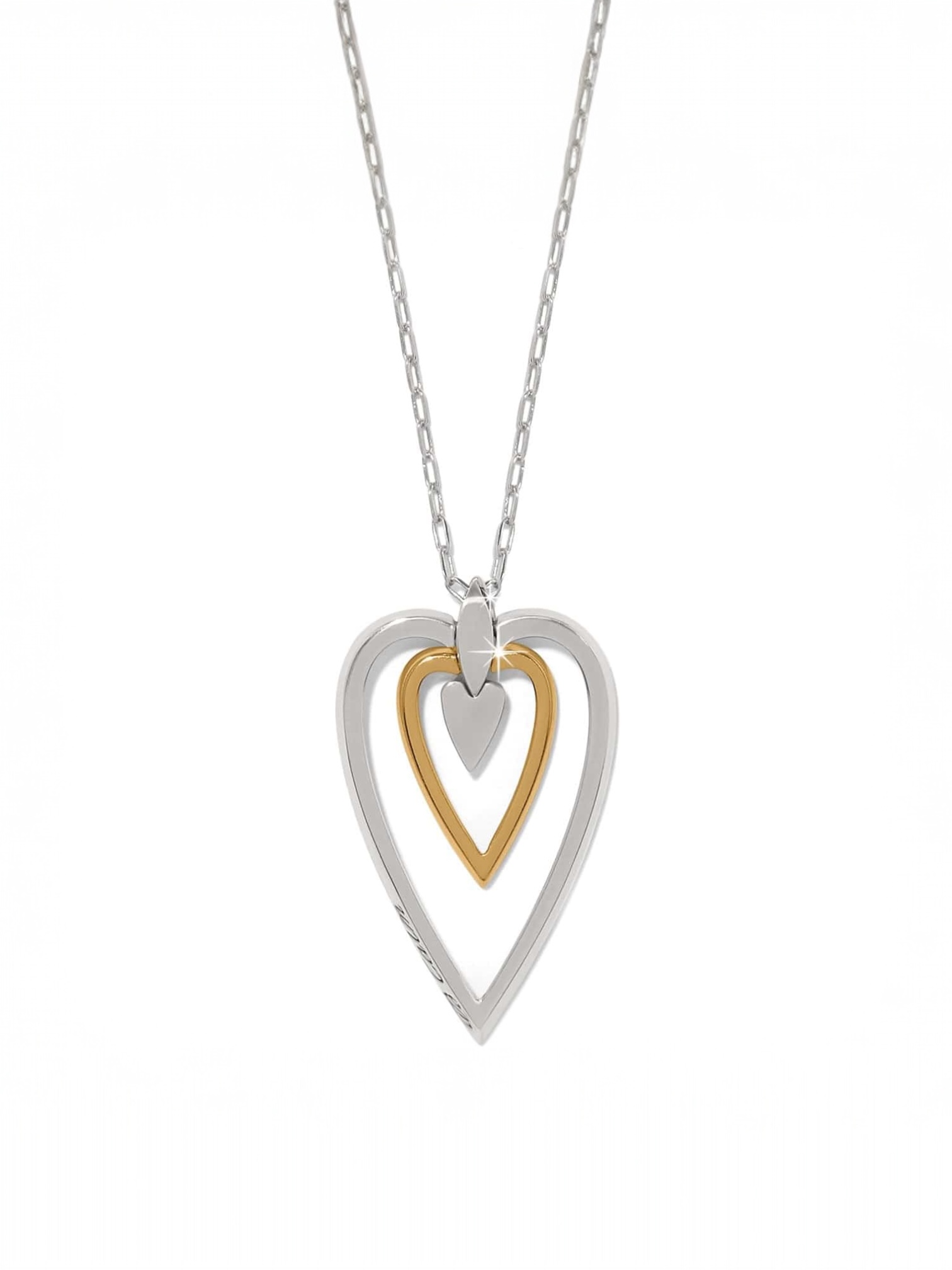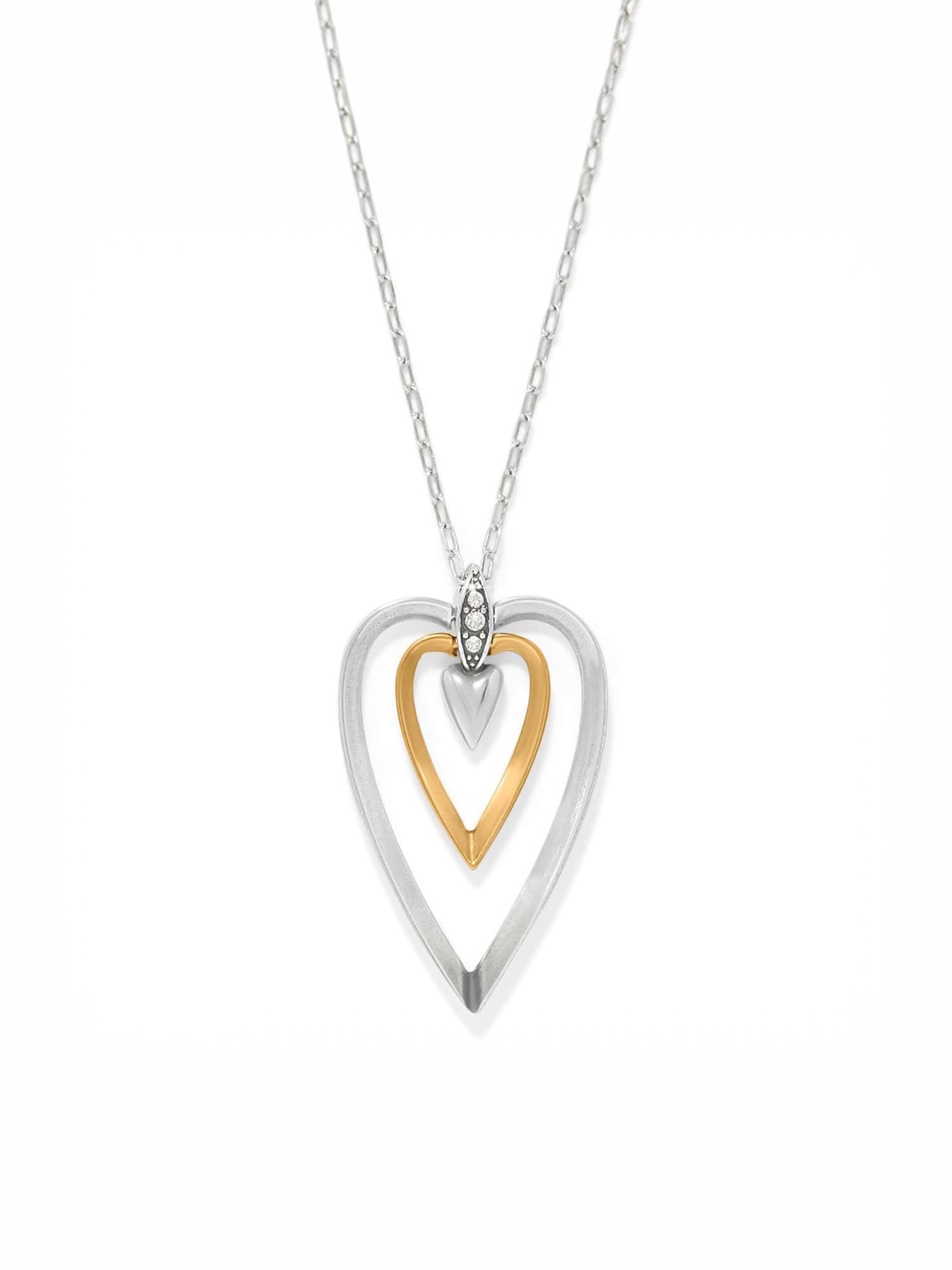 A pierced-out heart outlined with hand-set crystals, centered in a simple silver oval pendant, makes a classic accent whether worn solo or layered.