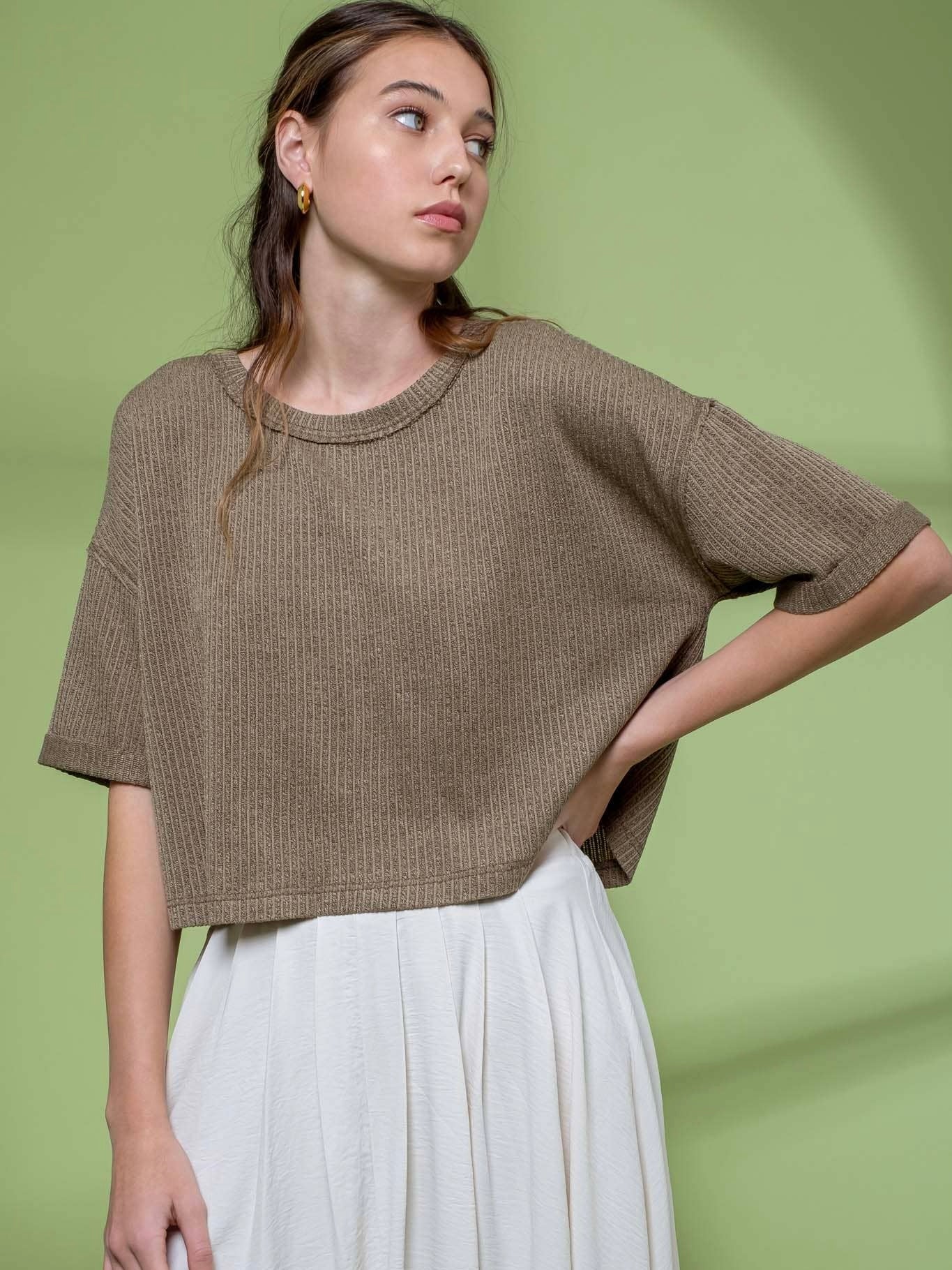 Short Fold Sleeve Knit Crop Top